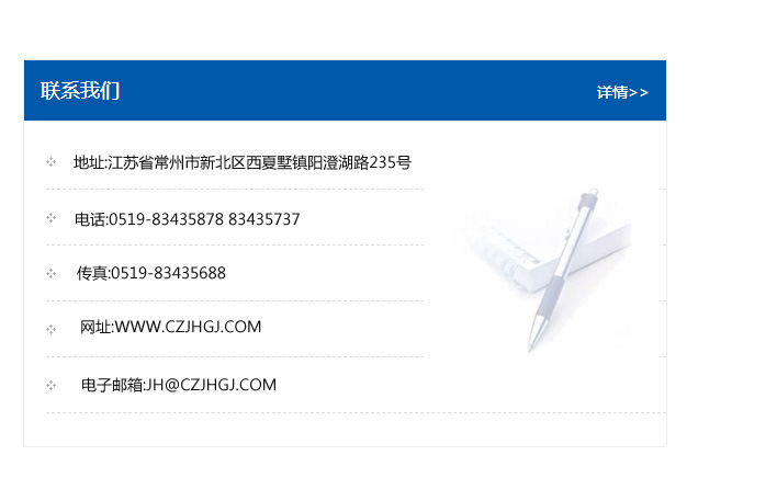 傳真:0519-83435688    郵編:213135    網址:WWW.czjhgj_com.jxjtdz.com    電子郵箱:JH@czjhgj_com.jxjtdz.com